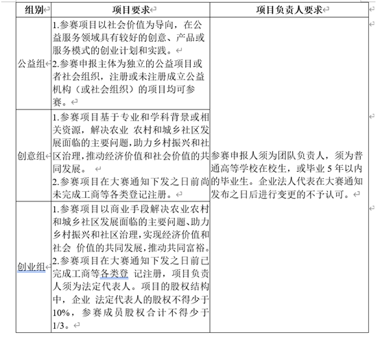 (二)参赛项目只能选择一个符合要求的赛道报名参赛,根据参赛团队负责人的学籍或学历确定参赛团队所代表的参赛学校,且代表的参赛学校具有唯一性。参赛团队须在报名系统中将 项目所涉及的材料按时如实填写提交。已获本大赛往届总决赛各赛道金奖和银奖的项目,不可报名参加本届大赛。