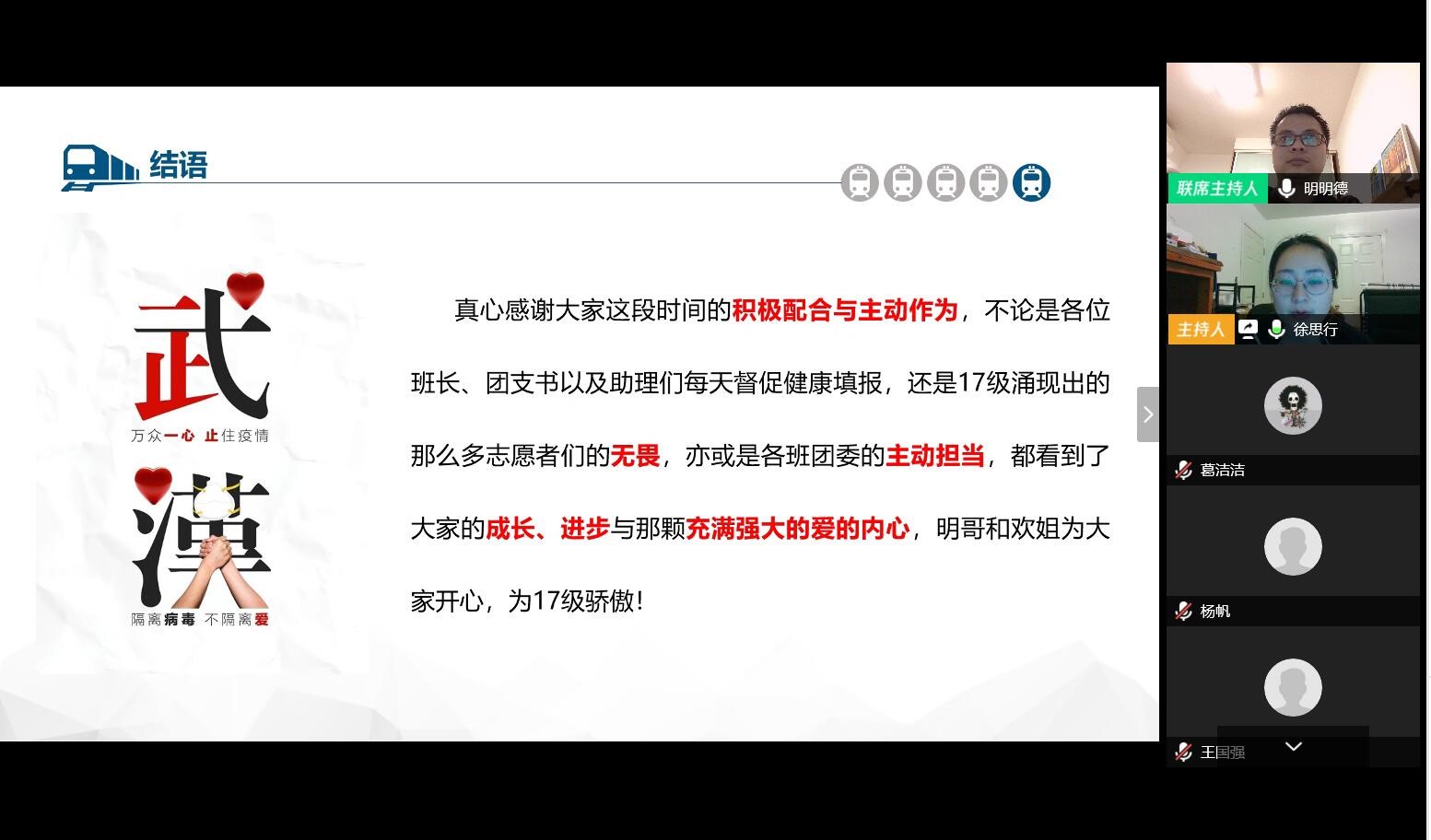 最后,两位老师代表学院感谢每位可爱的积极配合与主动作为,抗“疫”路上同行,材无所惧!