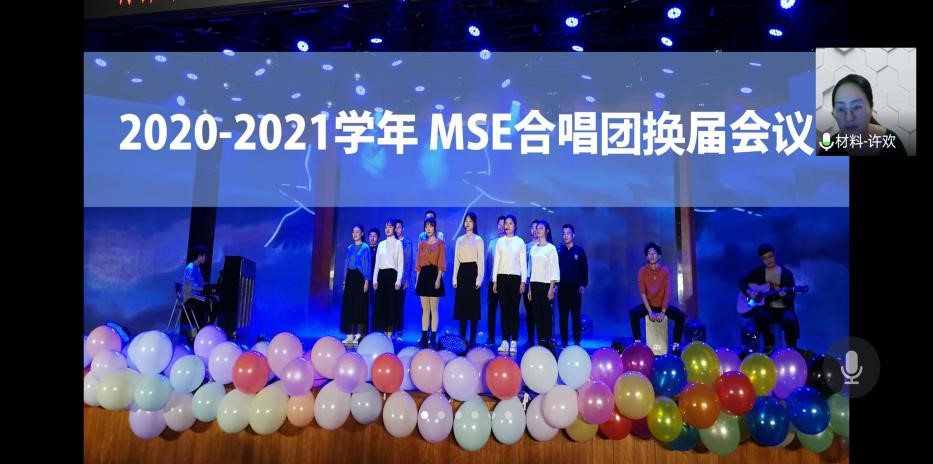 MSE合唱团顺利举行了2020-2021学年线上换届会议,指导老师许欢以及合唱团的全体团员共同参加了本次会议。