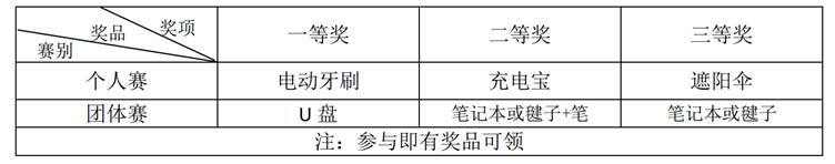 个人赛面向全体在读研究生,有意向参赛的学生将个人基本信息(姓名+学号+性别+联系方式)发送至班长出汇总。团体赛2020级以班级为单位报名,成员信息由班长汇总。2019级自行组队后到班长处报名。各班班长在5月6日晚8:00前将所有报名信息汇总并发送至文体部邮箱[email protected]。逾期不予报名。