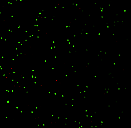 原图(激光共聚焦显微镜观察水凝胶中细胞分布及死活荧光染色结果)