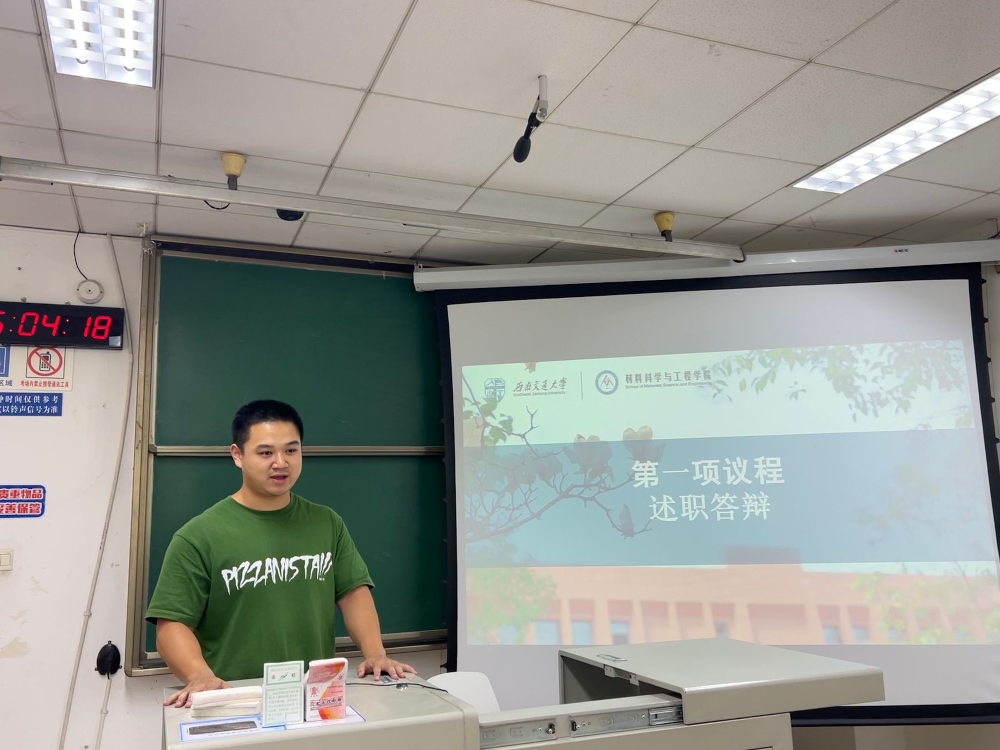 研究生会的工作在学院党委的正确领导下,在学院老师的悉心指导下,在广大同学的热情参与和支持下,研究生会始终奉行“全心全意为同学服务”的宗旨,结合学院特点,逐步落实各项工作任务,取得了良好的成绩。随后进行研会各部门负责人述职报告会。会上,各部门负责人围绕年度工作述说了各自部门在过去一年中的工作情况,就各自部门取得的成绩进行了总结,同时对工作中暴露的问题进行了深刻分析。最后表达了对材料研究生会和指导老师的感谢及对下一届研会成员的殷切期望。