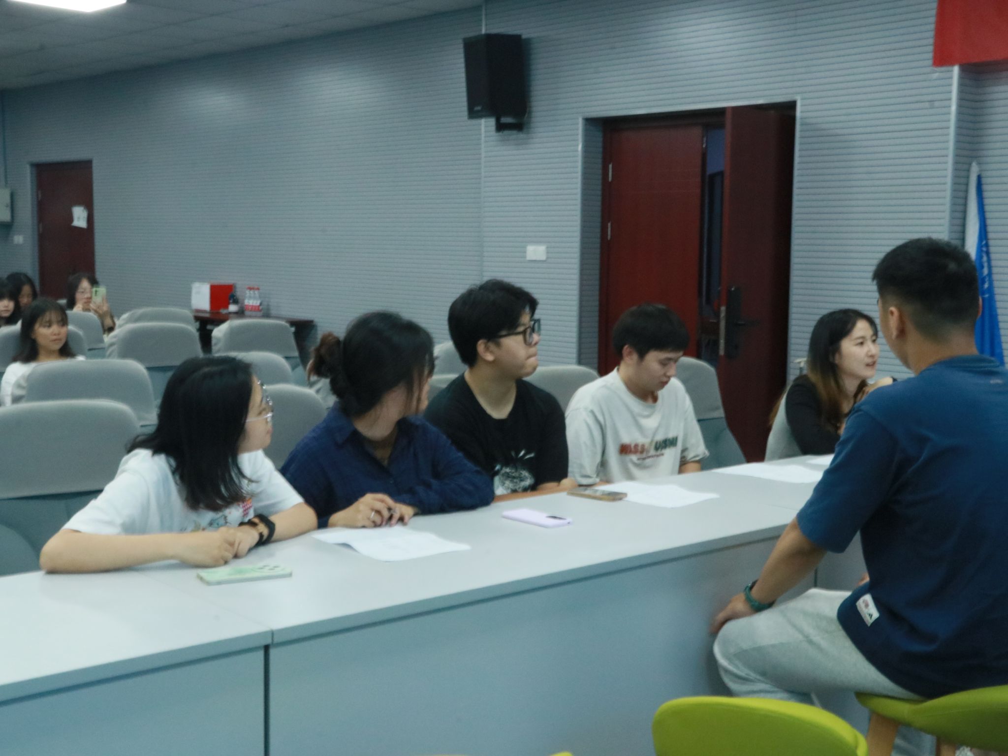 在接下来的自由交流与报名环节中,2025级的新同学们表现出了极高的参与热情。他们结合自身的兴趣、特长与发展规划,踊跃地前往心仪的部门展台前,与学长学姐进行面对面交流,进一步咨询部门工作的具体内容。各部门负责人也耐心细致地解答新生的疑问。现场气氛热烈而有序,许多同学当场提交了报名申请表,表达了希望加入研会、服务同学的强烈意愿。