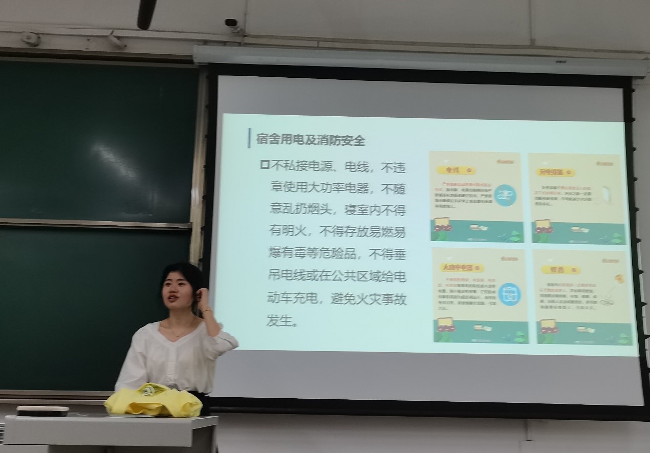 大会第一项,辅导员代宇欣进行宿舍安全教育。代宇欣老师带领同学们再次学习《色情文学
