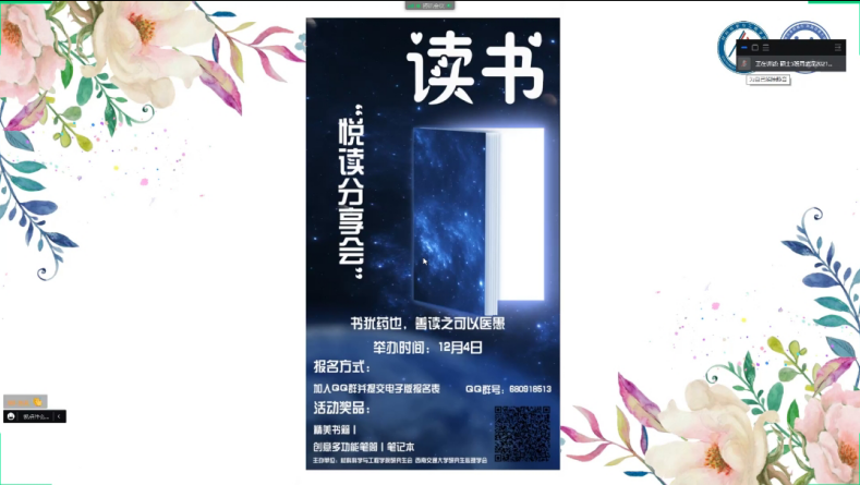 研究生心理协会在线上联合举办了以“书犹药也,善读可以医愚”为主题的悦读分享会活动。