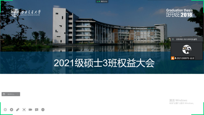 2021级硕士3班通过腾讯会议形式开展了权益大会。