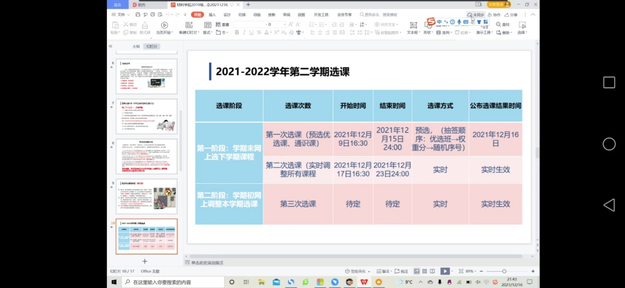 随后,熊苏雅强调2021-2022学年第二次选课安排,提醒同学们注意选课时间节点,特别是存在学分预警的同学要把握机会,珍惜时间。