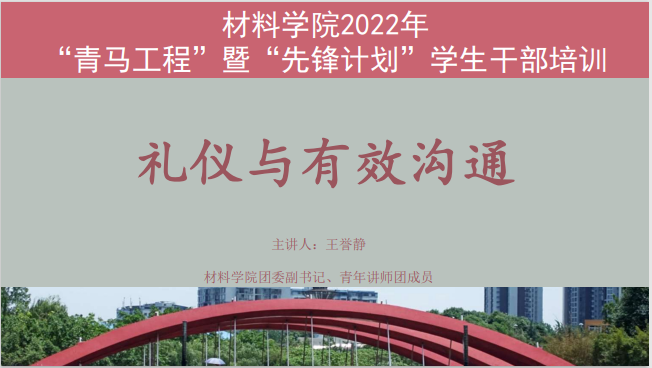 2022年度“青马工程”暨“先锋计划”学生干部培训第三期——礼仪与有效沟通顺利开讲。本次培训由色情文学