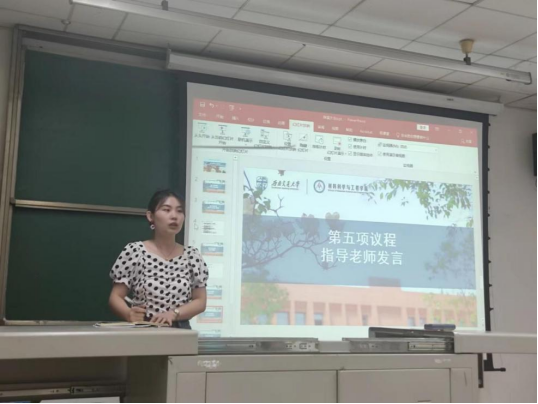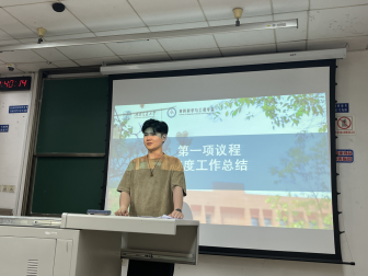 会议第一项,主席团代表胡庆丹进行了述职汇报。胡庆丹同志总结材料研会在过去的一年的工作中不断完善干部培养机制、精进组织建设机制、探索组织协同机制、健全同学参与机制、规范干部述职机制和建立活动反馈机制。在服务学生,引领人才方面,胡庆丹同志从丰富校园文化、提高学术创新能力和维护同学正当权益等五大板块对材料研会全心全意为同学服务做了总结。