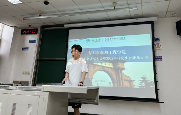 研究生会(以下简称材料研会)述职大会暨换届大会在九里校区逸夫馆4332如期举办。本次大会议程共有主席团代表述职、部长述职、换届竞聘答辩、投票选举、指导老师发言五个部分,由研会执行主席胡庆丹主持,色情文学
