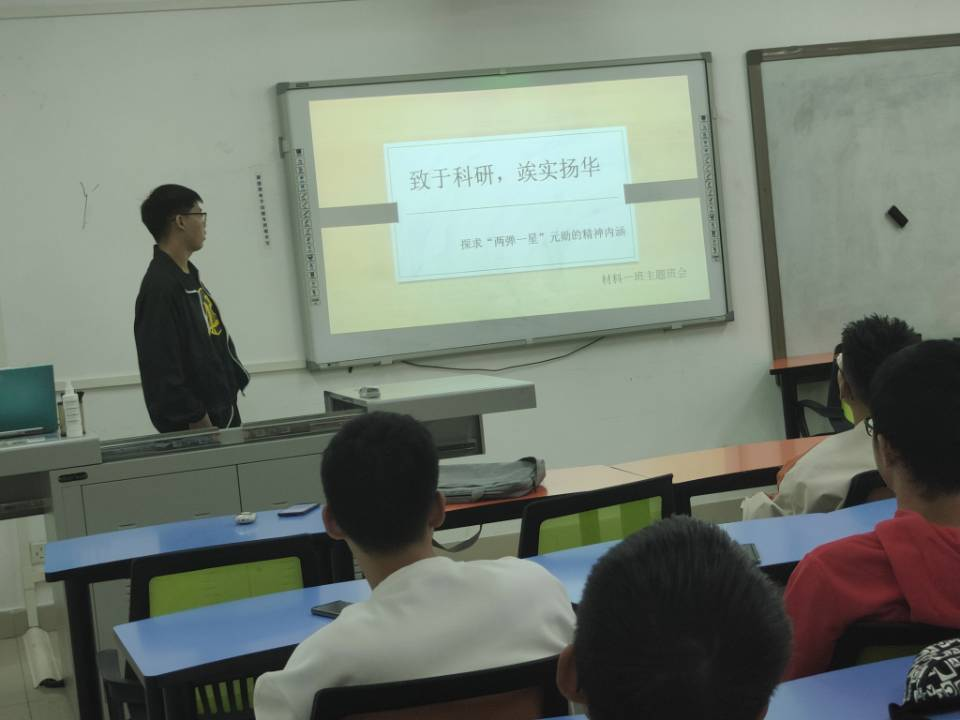 为贯彻落实习近平总书记重要讲话精神,大力弘扬科学家求真务实、报国为民、无私奉献的高尚品格,深度了解校友陈能宽院士的伟大贡献,感悟国防精神。2022年10月4日,在班委的组织下,材料2022-01班在x2123b开展了关于学习陈能宽院士精神的主题班会,全班同学积极参与。