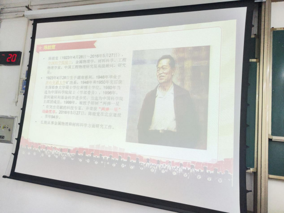 丁子航同学详细介绍了陈能宽院士的事迹,并且表示学习陈能宽院士精神可以促进同学们更好的学习提升自己并且详细介绍了陈能宽院士在我国两弹一星工程中做出的巨大贡献,陈能宽院士长期从事金属物理和材料科学方面的工程,为我国原子弹和氢弹的研制从事爆轰物理,炸药艺术与炸药物理化学,特殊材料冶金,实验物理等学科领域的研究和组织领导工作。