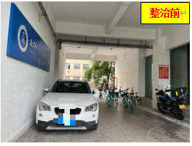 九里校区3号楼东南门处常有汽车违规停放在中庭通道、汽车在未划线且妨碍消防通道的门口处随意停放、以及摩托车、自行车在消防通道处违规停放的情况,消防通道堵塞不仅阻碍通行,还存在较大安全隐患。为此,学院学生工作组和学院综合办公室联合开展专项整治行动,通过摆放禁停标识和引导牌、开展相关公示公告或点对点告知,强化学院师生的安全意识。在此基础上,学院组织研究生在消防通道摆放路障锥桶、给违规停放汽车发放告知单、安排党员干部值守执勤和检查规整。消防通道整治工作效果明显,此项工作的成功开展不仅为师生创造了更平安的环境,还提高了全院师生的消防安全意识。