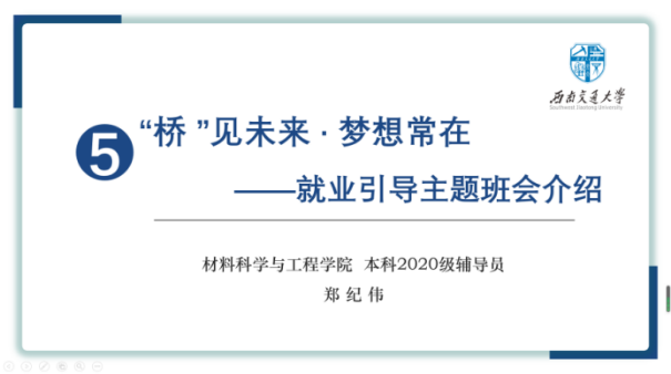 本科2020级各班召开“‘桥’见未来·梦想常在”就业指导主题班会拉开序幕,更是为与会同学们上了一堂就业思政课。同学们通过参加活动受益良多,既了解到当下的就业形势,又认识到自身能力与岗位要求的差距;既树立和培养了生涯规划意识,又加深了对学业目标、职业目标的思考;不仅学习和提高了就业知识与能力,更深刻感悟到努力奋斗的意义,从中汲取不断奋进的力量。