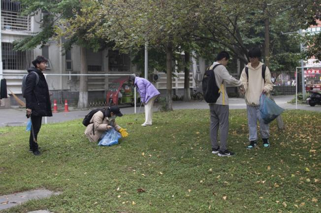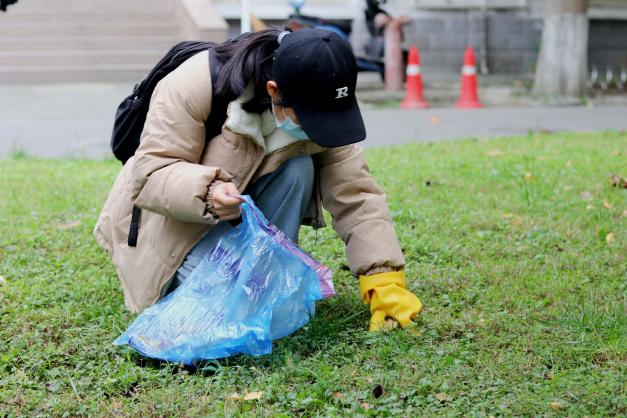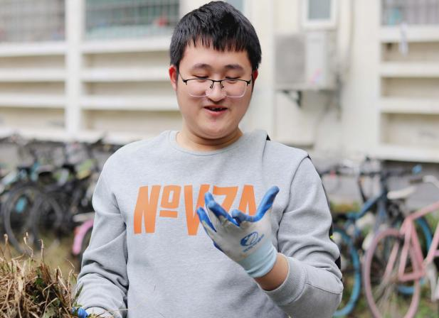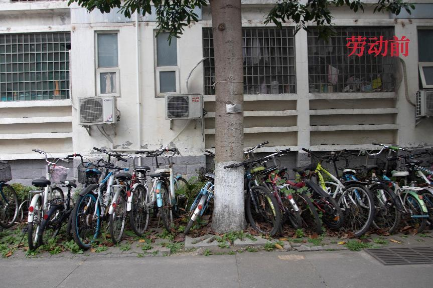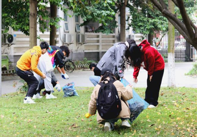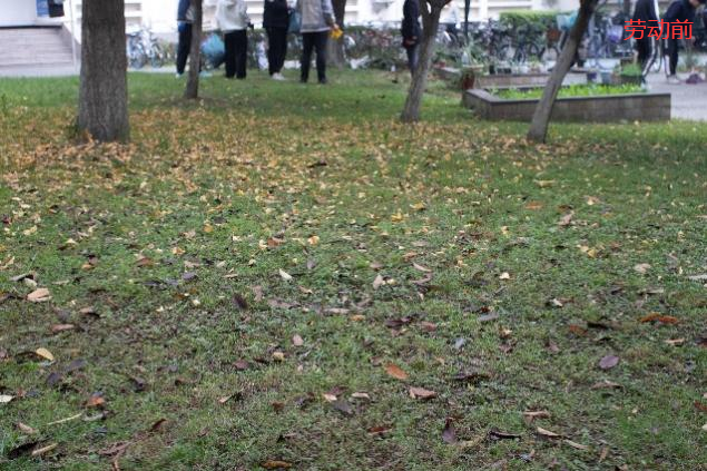 老师和学生们忙碌的身影在草坪上形成了一道独特的风景,每个学生都有分工,有的负责捡拾垃圾,有的负责归整落叶,有的负责整理摆放自行车。通过此次劳动实践,园区的环境得到明显改善,干净整洁,让美丽交大校园焕发光彩!