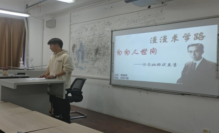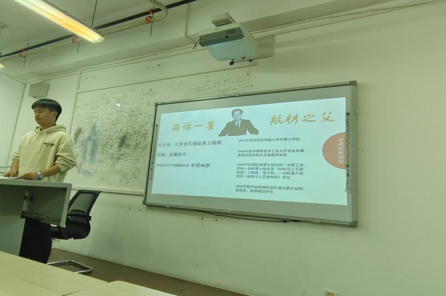 首先,秦路洲同学带领同学们回顾了姚桐斌先生短暂而伟大的一生。带领同学们一起学习了他发奋苦读,艰苦求学的经历,介绍了到姚桐斌先生舍弃国外提供的良好的科研条件和个人待遇,心系祖国,立志报国,克服重重困难回到祖国的爱国情怀。以及他呕心沥血,攻坚克难,把多年所学,播撒到他热爱的土地上,一切从零开始,为中国航天事业奠基的伟大功勋。
