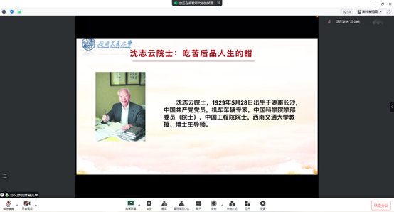 硕士一班、二班同学以我校沈志云院士的话语“吃苦后品人生的甜”为指引,学习沈志云院士的精神,结合视频资料聆听沈院士的谆谆教诲,大家就相关学习内容结合自身进行讨论学习。