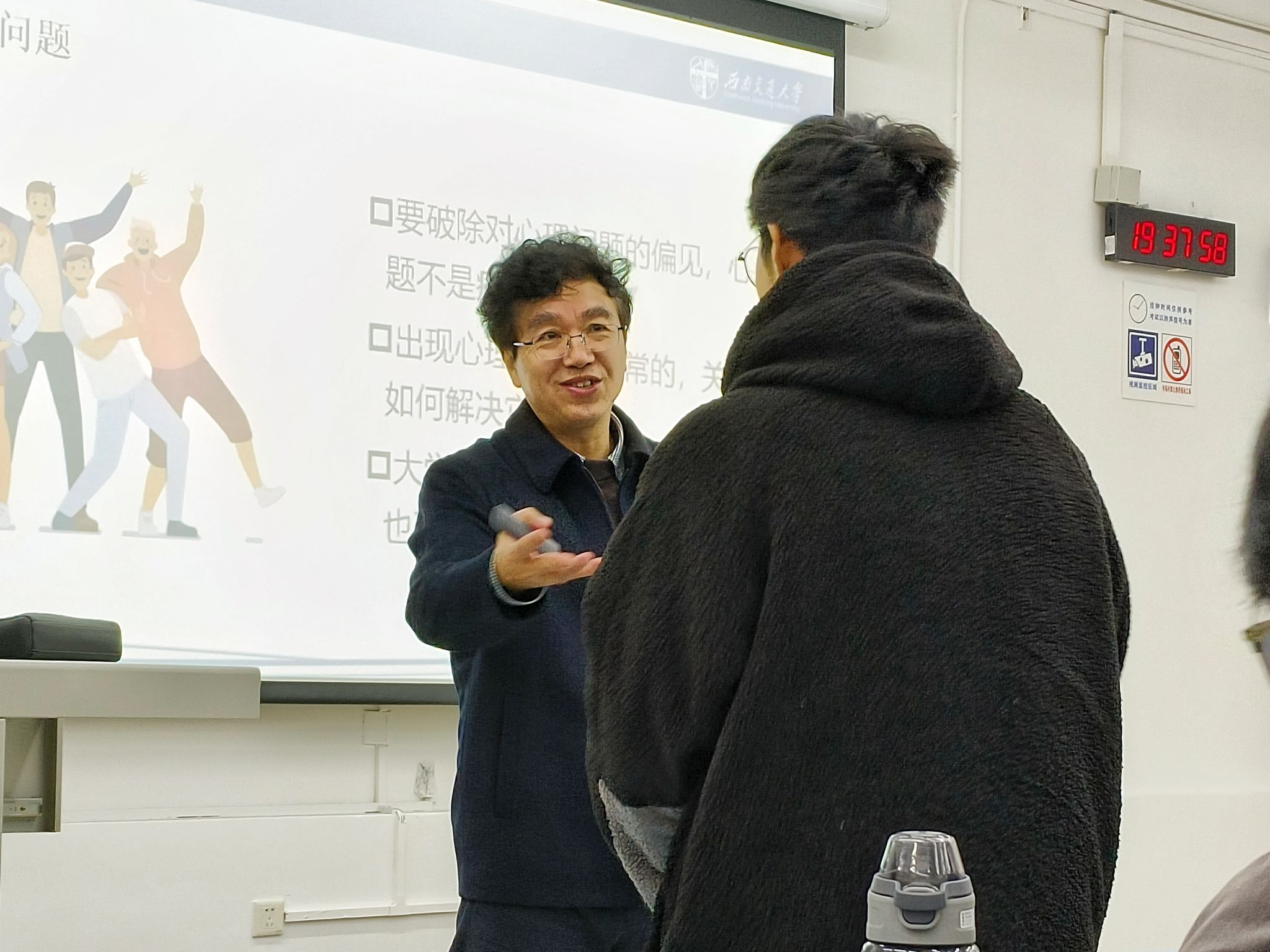 宁老师随机选取了几名同学进行简单的心理咨询对话,从大家身边的烦恼事入手启发同学们在面临问题时要学会转变认知和思维方式。大学阶段是同学们过渡到成人期的重要发展期,从入学到毕业,每个阶段都有不同的发展任务。宁老师为各个阶段的大学生们理清思路并提出健全人格的发展建议。