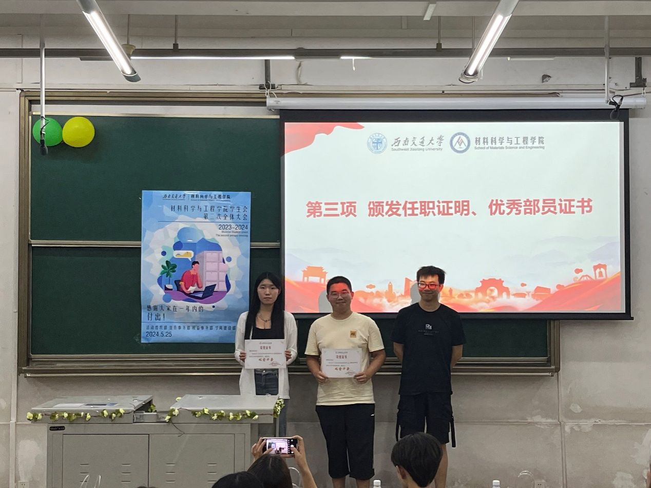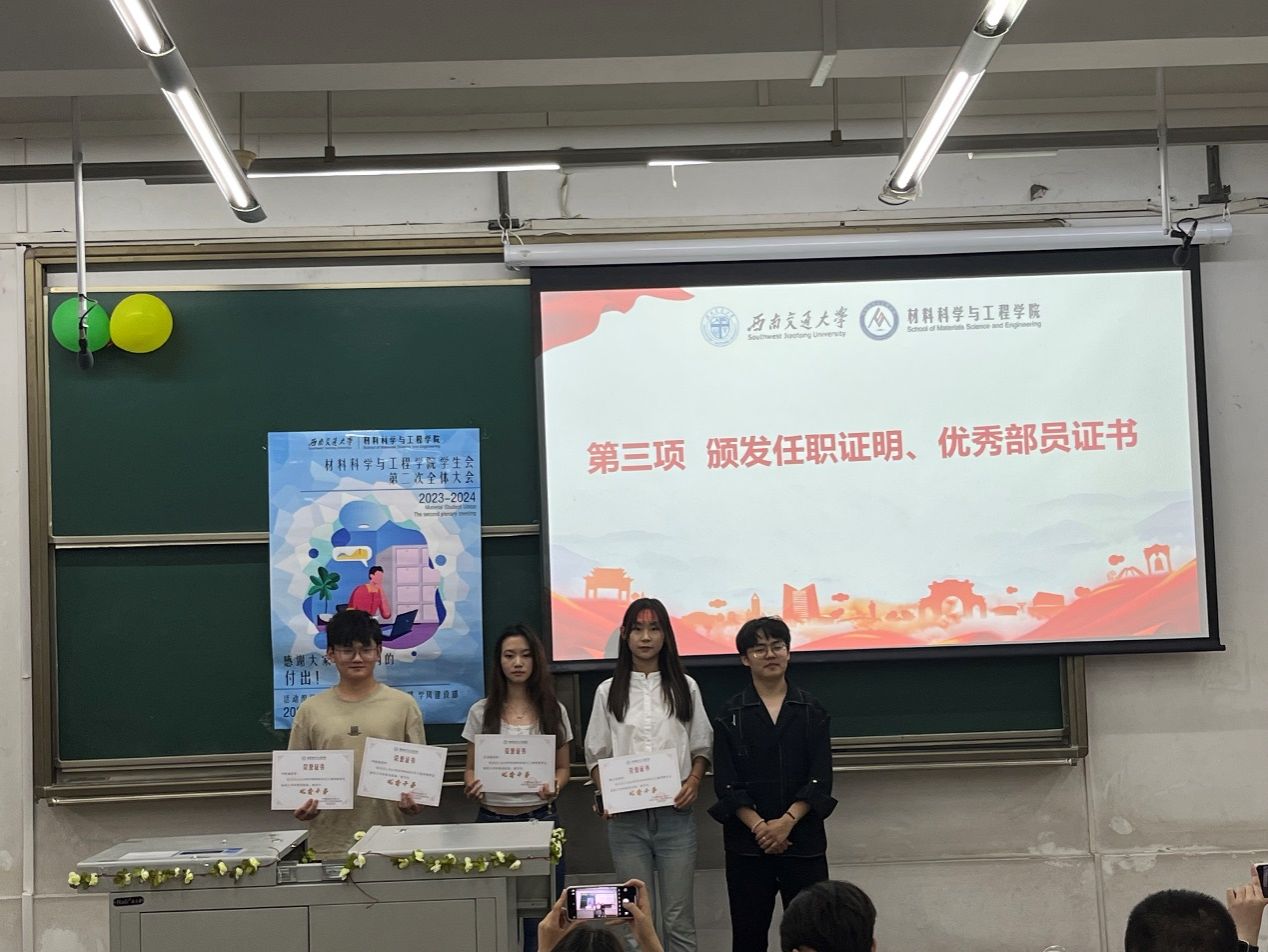 大会第三项议程:颁发任职证明、优秀部员证书。一纸证书,代表着不懈努力工作受到的肯定,意味着辛勤付出得到的回报,或是其他——会场洋溢着欢乐的笑声。