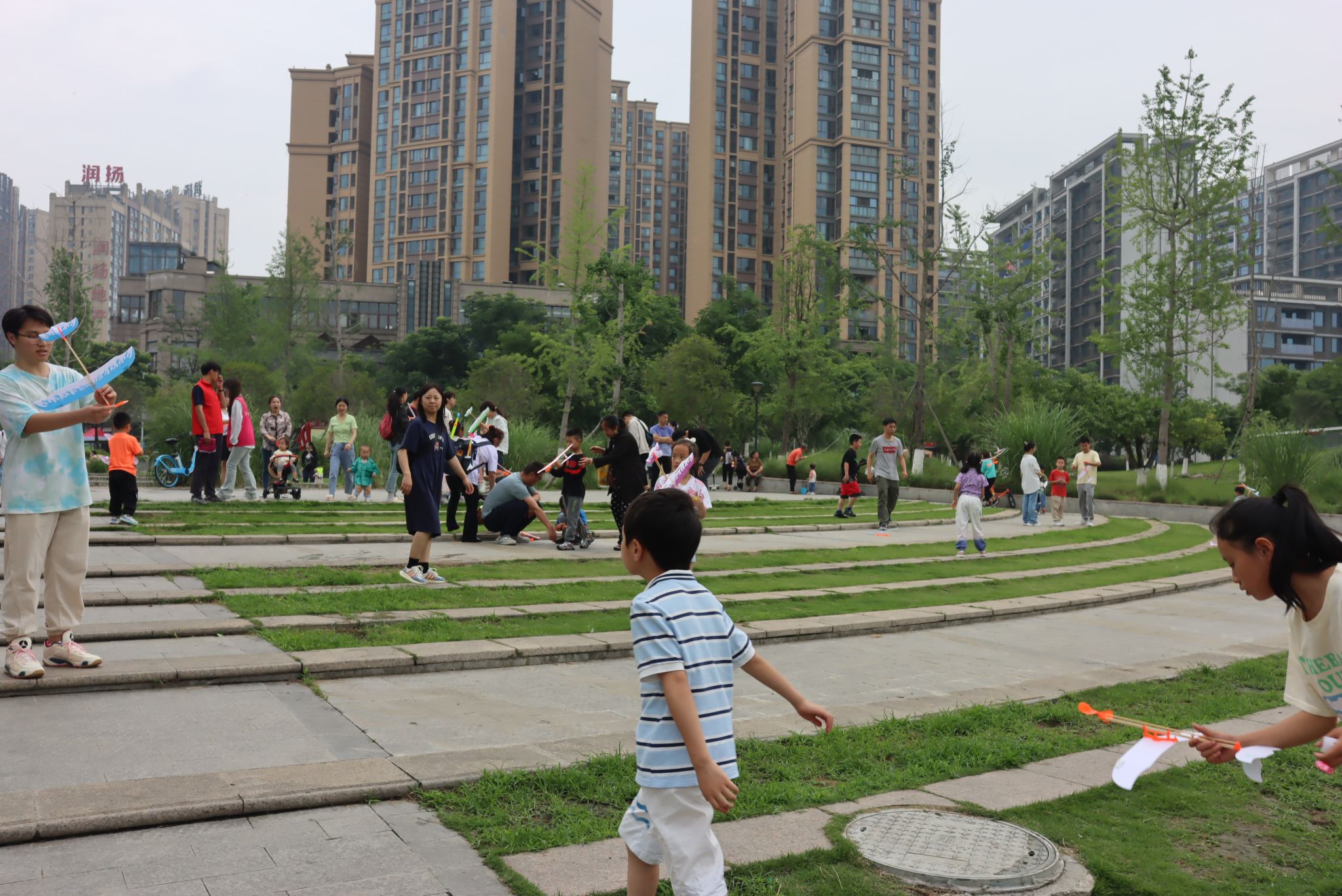 最后,在实践队的带领下,所有小朋友和家长移步到“回家的路”河边公园,小朋友在志愿者的指导下放飞飞机模型。