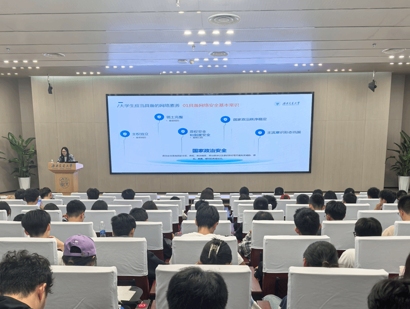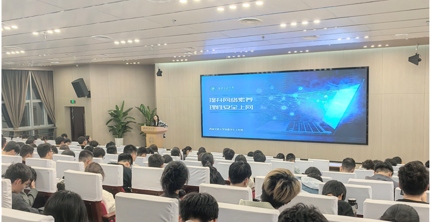 宣讲活动围绕“网络素养及其特征”、“大学生网络失范行为与案例分析”以及“大学生如何提升网络素养”三大核心议题展开,旨在通过系统的讲解和生动的案例分析,帮助同学们树立正确的网络观念,提升自我保护能力。
