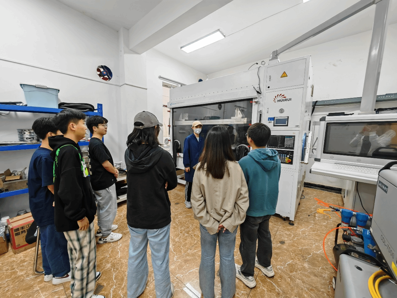 随后,同学们参观了高通量激光增材制造系统设备,师兄介绍了环境仓的独特作用,它可以模拟各种特殊的环境条件,为材料性能测试提供精准的环境模拟,