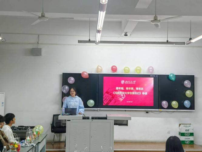 首先是张琬褀老师以“青年观,青年情,青年志”为主题,领学《习近平与大学生朋友们》。张琬祺向同学们介绍了该书的内容概况,并向同学们介绍其中饱含着习近平总书记薪火相传的“青年观”、念兹在兹的“青年情”、厚望重托的“青年志”,为做好新时代新征程党的青年工作提供了重要遵循。提醒同学们牢记党和人民的殷切期待,争做有理想、敢担当、能吃苦、肯奋斗的新时代好青年,成为让党放心、爱国奉献、担当民族复兴重任的时代新人。