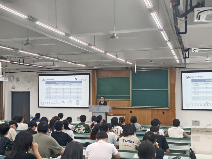 会议的第二个环节为熊心怡老师就年级期中成绩进行简要分析,她表示,部分学生成绩尚未达到理想标准,反映出学习投入度有待提高。她鼓励同学们积极面对,充分准备即将到来的期末考试。鼓励各班加大对成绩相对落后同学的关注和帮扶,推动以班级为单位的学习助学计划,保障所有学生齐头并进,共同进步。