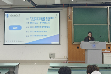 第三部分,熊心怡老师为同学们梳理了2023级本科生2023-2024学年的成绩,对优秀率、四六级通过率、欠学分情况等重点数据进行了解读,便于同学们对各科目的学习状况有了更加清晰的认识。熊心怡老师特别强调了学习态度和方法的重要性,鼓励同学们要树立正确的学习观念,注重学习方法的培养,努力提升自己的学习能力和水平,引导同学们对未来进行职业生涯规划,认真对待大学每一天的学生生活。临近学期末,熊心怡老师希望同学们尽快进入备考阶段,认真复习,提醒同学们诚信考试。