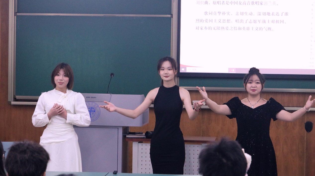 此次培训以红歌《我的祖国》为例,讲述了红歌的深刻内涵以及特点,并从这首红歌在抗美援朝时期的创作背景出发,阐述了抗美援朝精神的伟大力量,让同学们的爱国之情油然而生。接着,由表演团的成员为大家演唱红歌《我的祖国》,感受其中蕴含的丰富情感。在观看完抗美援朝纪录片之后,大家对抗美援朝出兵的原因以及英勇的中国人民志愿军有了更深刻的理解。