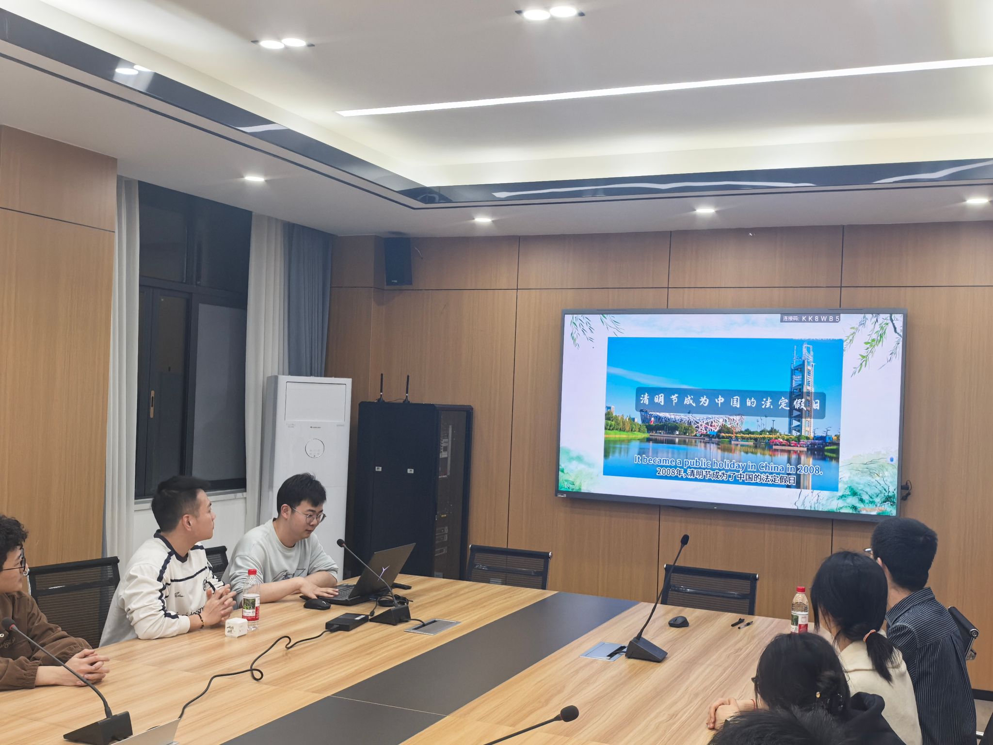 主题演讲:6名博士生代表用英语讲述清明节习俗、家族记忆与文化传承,结合个人科研背景,探讨传统节气与现代科技的交融。例如,博士生李明以“清明与材料科学中的可持续理念”为题,将扫墓习俗中“慎终追远”的精神与环保材料研发理念相结合,引发共鸣。