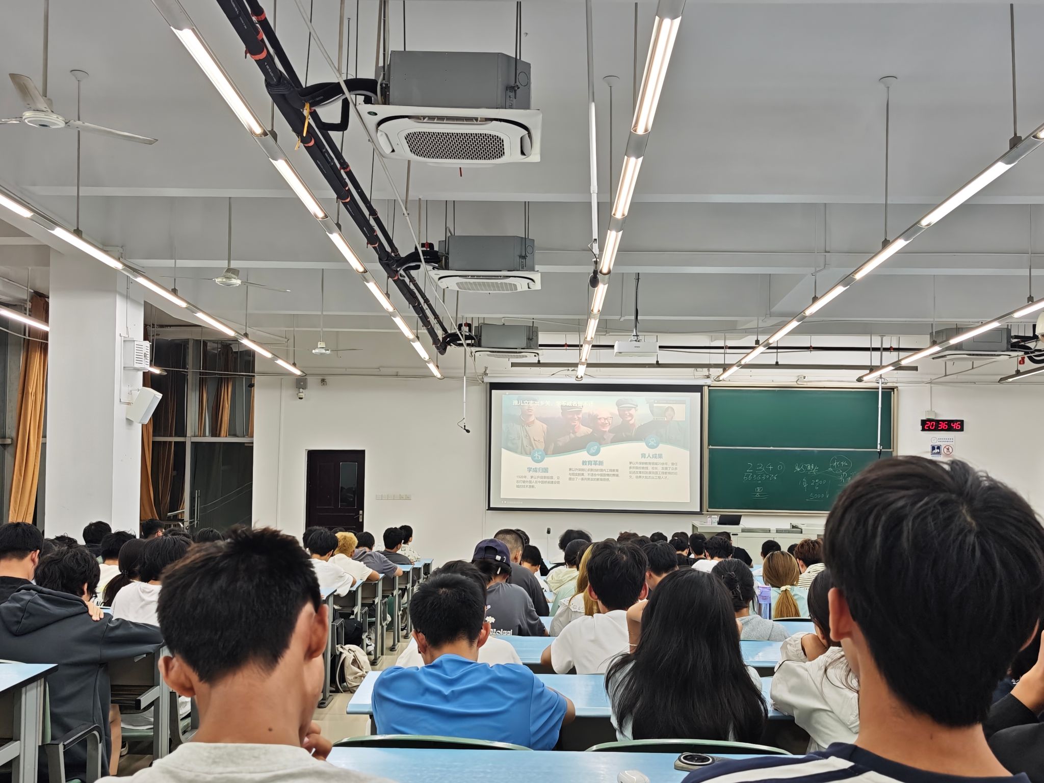在科学家精神宣传环节,潘云滢以学校杰出校友茅以升的“炸桥抗战”事迹为核心展开。通过历史照片与生动讲述,带领大家回顾了1937年茅以升为阻日军南下,亲自炸毁由他主持修建的钱塘江大桥的历史一幕。“桥炸了还能再建,国家没了就什么都没了”——茅以升在民族危难时刻的抉择,生动诠释了科学家“心怀家国、取舍担当”的精神内涵。宣讲进一步将茅以升战后再建桥梁的坚韧精神,与新生当前可能面临的适应困境相联系,引导同学们理解:“人生征程,桥梁以渡”,科学家精神正是帮助青年跨越成长沟壑的内在力量。