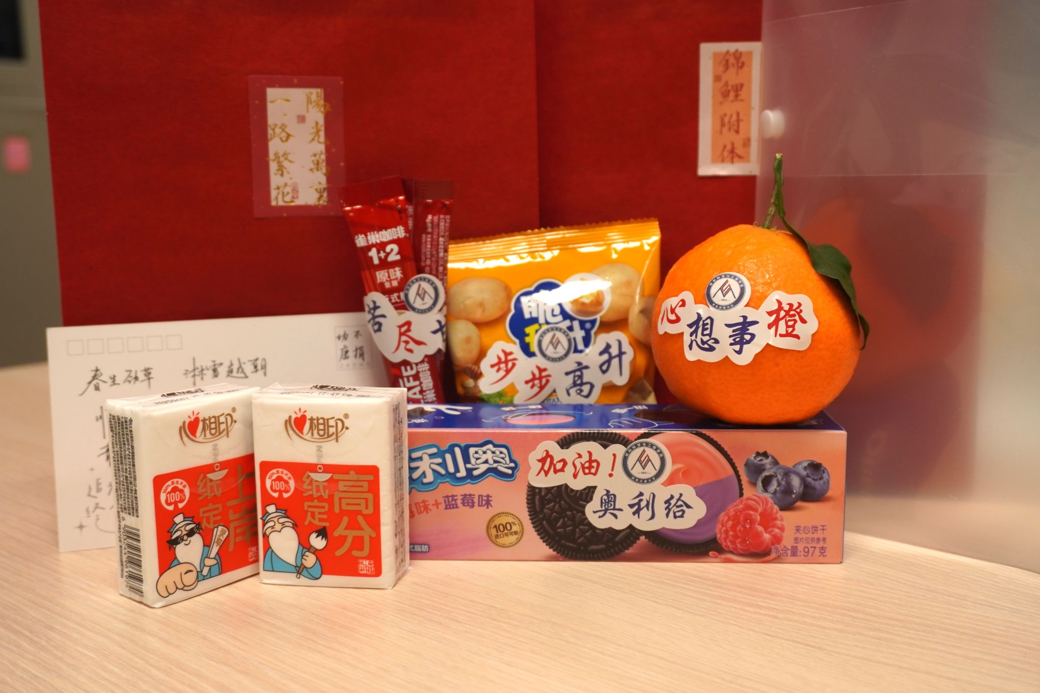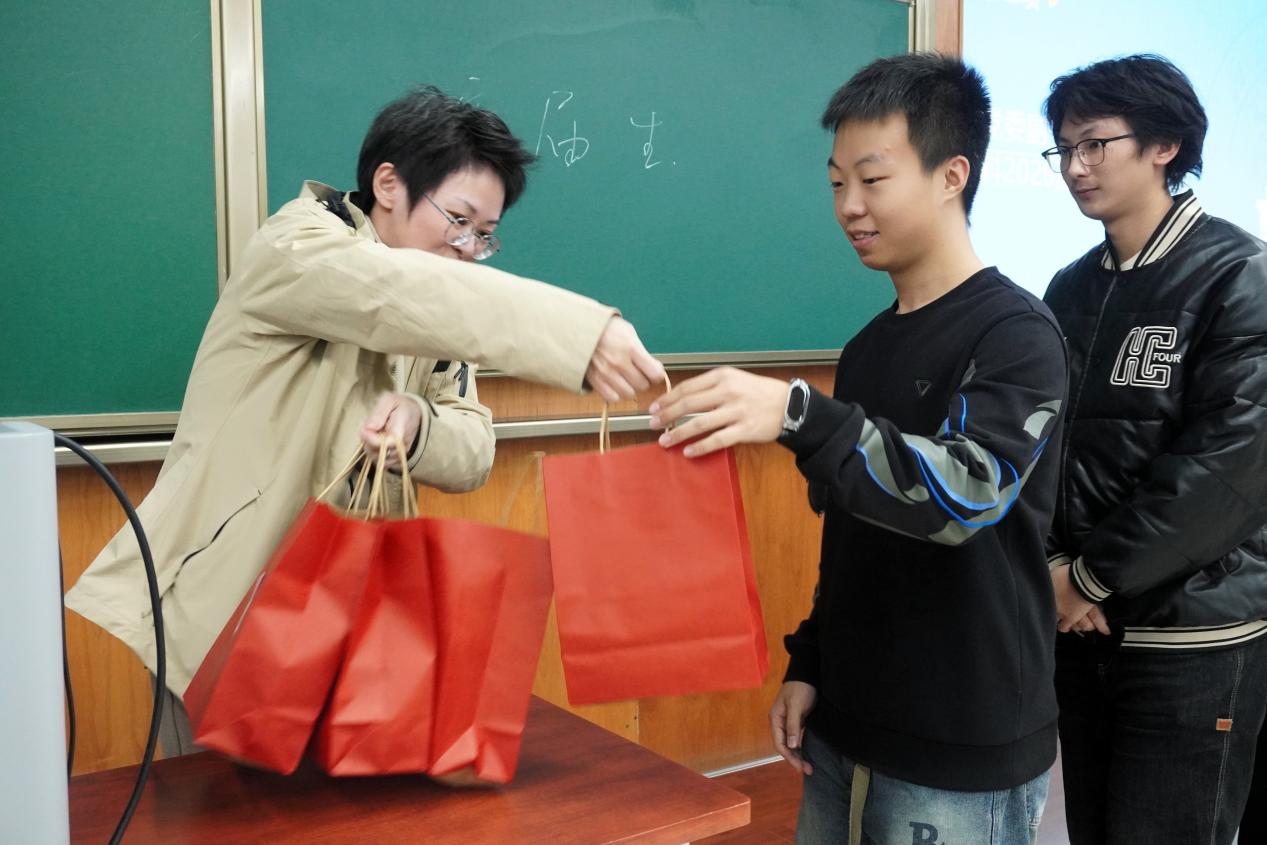 会上还为考研学子发放了“考研加油包”。礼包内含有寓意美好的实用物品及学弟学妹们亲手书写的祝福卡片,让备战考研的同学深切感受到学院的温暖关怀。同时,学院也为全体本科毕业年级准备了冬季慰问,切实回应同学们在宿舍装修期间的生活需求。