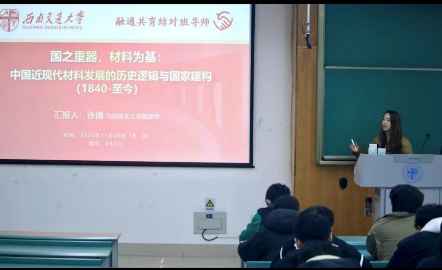 于X4352进行“青马工程”培训。此次培训由马克思主义学院徐倩老师主讲,题目为《国之重器,材料为基:中国近现代材料发展的历史逻辑与国家建构(1840-至今)》。