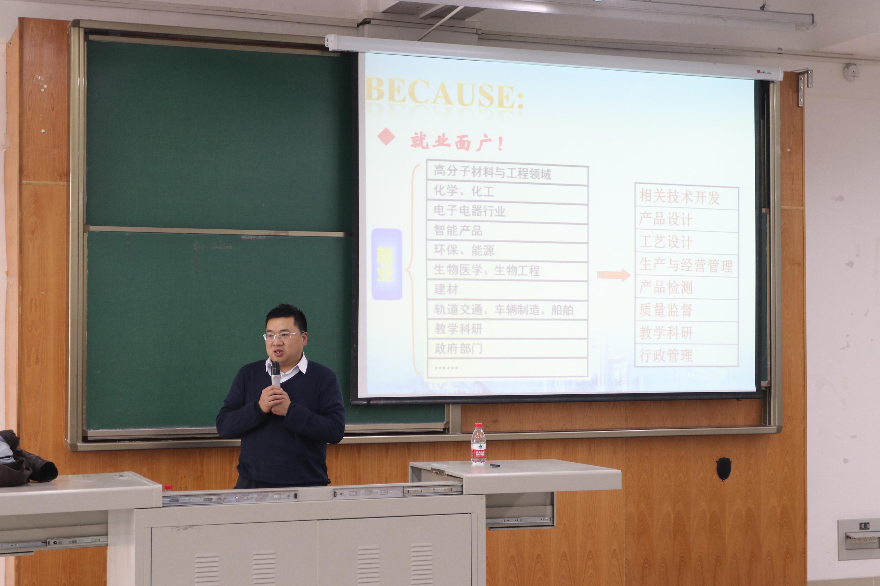 首先,王勇老师宣布了一个好消息。就在昨日,教育部通知,我校高分子材料科学不再作为材料大类下的方向,而将作为一个专业单独招生。这也引起了同学们的关注。
