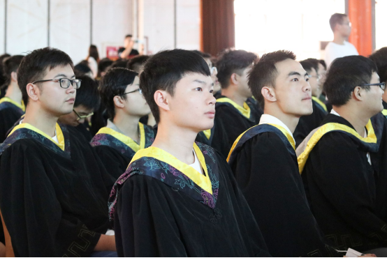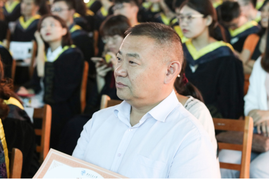 党委贺剑书记进行致辞。贺剑书记对2019届本科毕业生表达了真心的祝贺,对默默耕耘、无私奉献的老师们表示了衷心感谢。在这个青年人主导的时代,贺剑书记对毕业生提出了几点殷切期望:第一,实现理想靠奋斗,在不同阶段定不同的目标,不断学习充实自身,为自己的远大理想勇于拼搏、砥砺奋斗,方能与时俱进;第二,锤炼品德增本领,古语有言:“人无德不立”,品德是为人之本。要朝乾夕惕、不负韶光,努力学习掌握科学知识,提高内在素质,锤炼过硬本领。第三,热爱祖国勇担当,要珍惜这个时代、担负时代使命,在担当中历练,在尽责中成长。贺剑书记希望2019届优秀材子们让青春在新时代改革开放的广阔天地中绽放,让人生在实现中国梦的奋进追逐中展现出勇敢奔跑的英姿,努力成为德智体美劳全面发展的社会主义建设者和接班人。