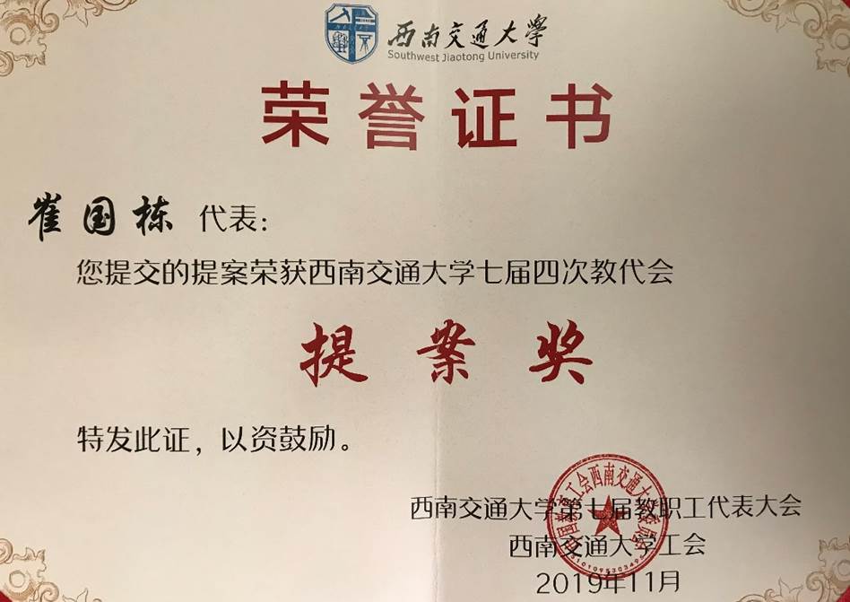 图3 2019年教代会提案获奖证书