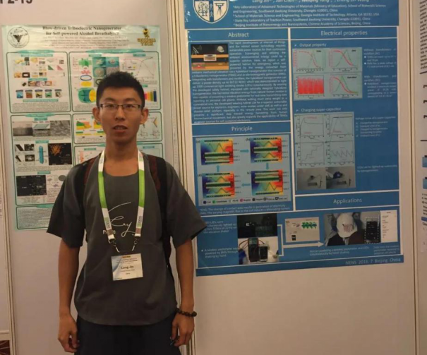 铺天盖地的报道,国内科学界一片欢腾,而远在美国的靳龙听到这个消息更是无比激动。这位科学界的传奇人物正是他在美国佐治亚理工学院进行我校博士联合培养计划的导师。靳龙因出色的科研成果目前正于美国师从王中林教授研究摩擦纳米发电技术。该奖项评选委员会对王中林教授的科学成就给予高度评价,认为他所带领的包括靳龙在内的团队在纳米发电机和自供能系统研究方面做出了开创性贡献,并认为这一技术将有望使人类从环境和生物系统中获取能量成为现实,“在不久的将来改变世界”。
