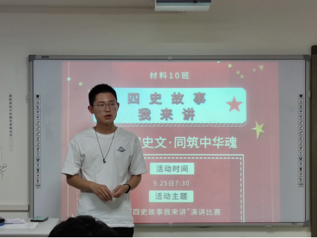 结合新生入学教育相关要求,促进新生适应大学生活、引导新生成长发展,全面提高综合素质,以班级团支部为单位自行组织学习“四史”相关知识后,开展“四史”故事我来讲主题演讲比赛(主题团日活动),各班级团支部全员参与、全程网络直播,脱稿演讲(可使用PPT辅助,每页不超过20个字),每人限时3-4分钟。每个班级推选3名表现优异的同学参加第三阶段的全年级评比活动。
