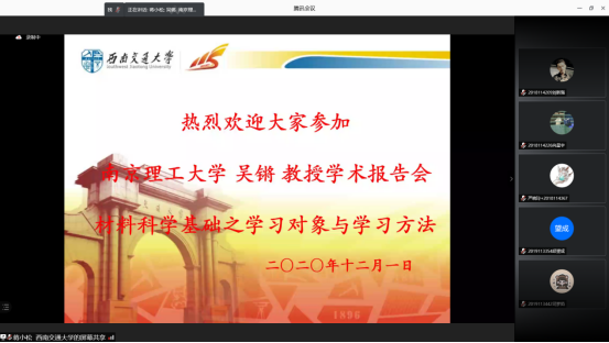 邀请吴锵教授,为“材”子们讲解《材料科学基础的》的学习对象与学习方法,帮助大家更好的消化理解相关专业课知识,为大家在《材料科学基础》的学习提供更科学的方法。12月1日晚上7点,讲座通过腾讯会议准时召开。