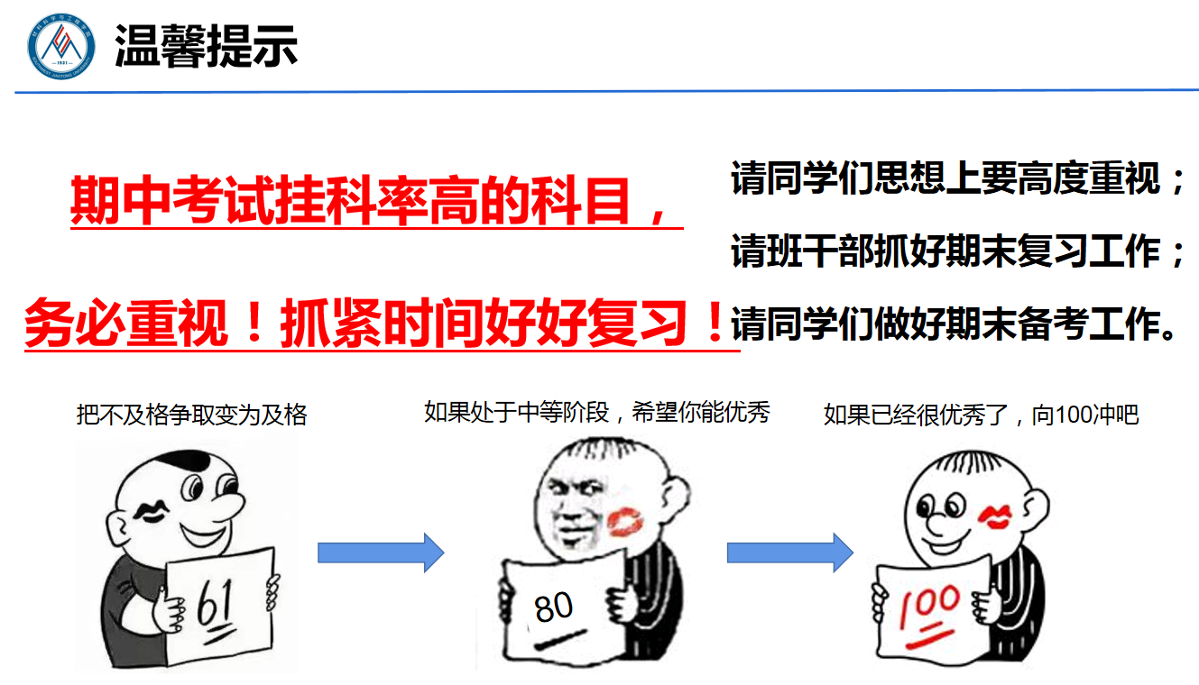 此外,辅导员老师向同学们进行了期末动员,并提到了考试考风考纪的问题。