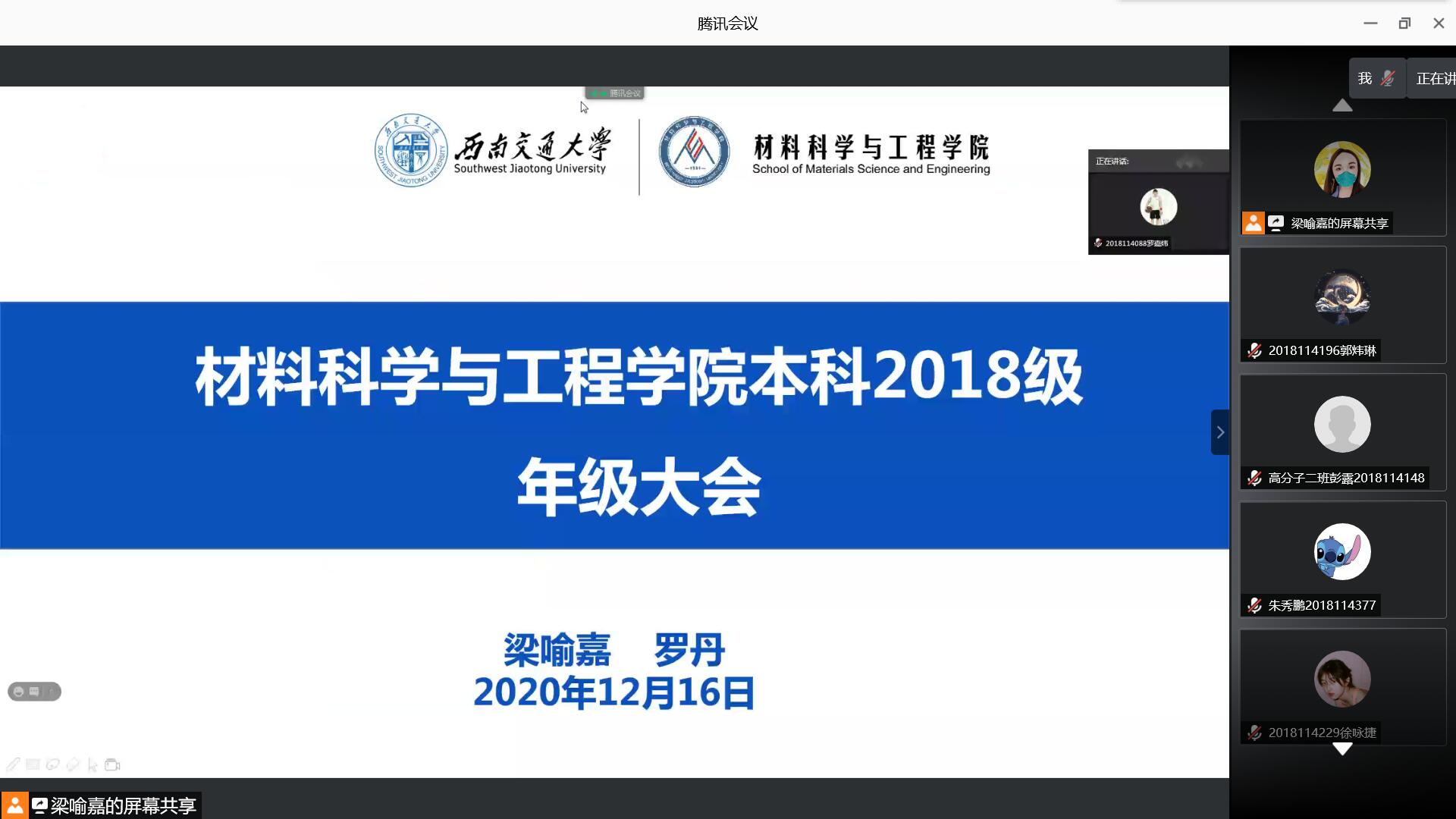 2020年12月16日晚21:00,2020-2021学年第1学期2018级第一次年级大会顺利举行。由于疫情原因,本次大会采取线上腾讯会议的形式。出席大会的有色情文学
