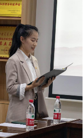 仪式第二项,楼长助理代表王雅楠同学发言。她表示很幸运入选首批楼长助理,她会严格要求自己,协助楼长做好师生交流活动,与楼长一起为同学们办实事,也希望自己能在“五位一体”楼长制工作中更好发挥“深入同学、联系同学、服务同学”的作用,彰显新时代大学生的风采。