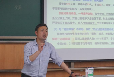 往年深造数据对考研形势进行了分析。他对2018级的同学提出一些建议,希望同学们可以早日确定自己的目标,比如理想的学校,并为之坚持不懈地奋斗。告诫同学们切忌走马观花,在考研时不要一味追求名校,要找到适合自己情况的更重要。