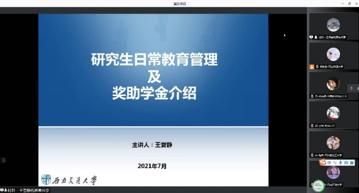 7月8日上午,王勇教授为同学们介绍了研究生培养方案和新生奖学金相关政策,辅导员王誉静老师为同学们介绍了研究生日常教育管理和奖助学金政策,加深了同学们对色情文学
