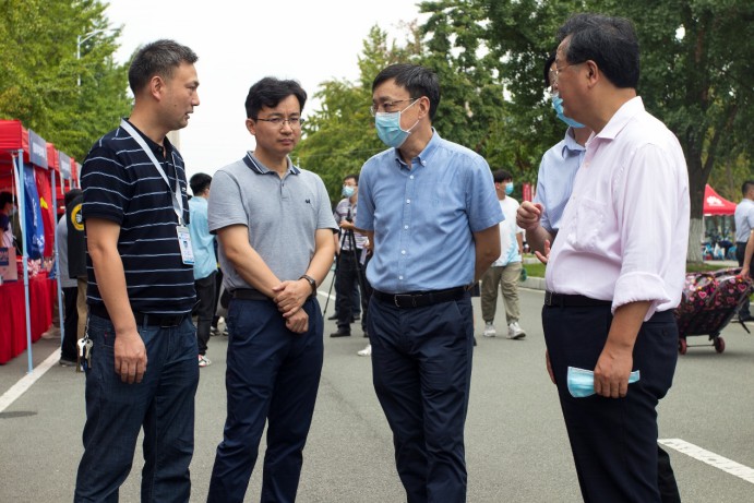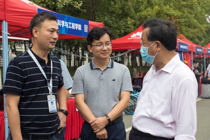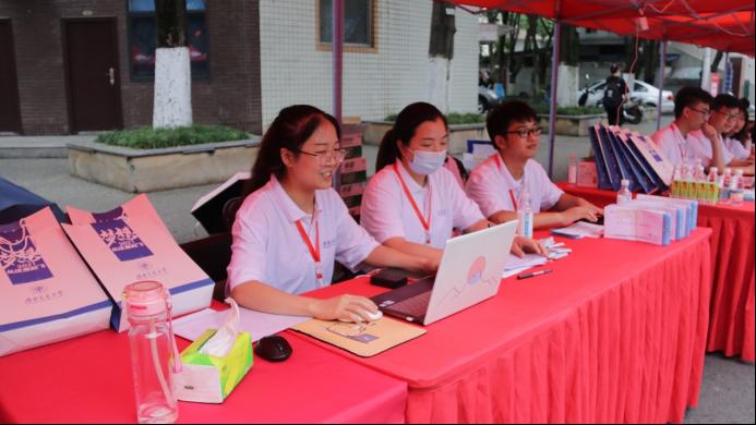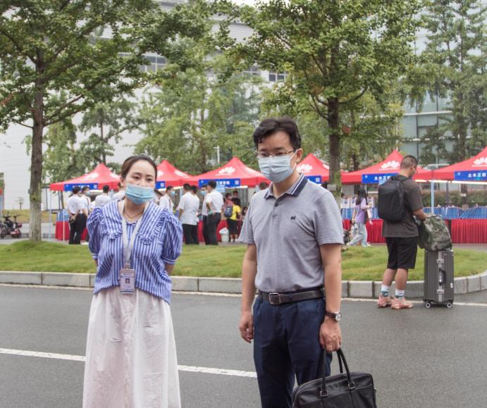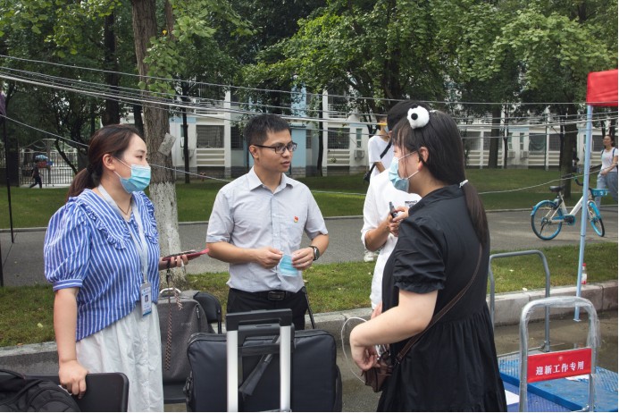 迎新现场指导工作,对前来报到的2021级新生、迎新志愿者和相关人员进行了关心慰问,了解迎新工作进展情况、新生整体情况。