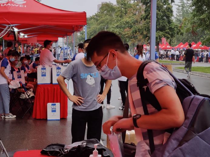 志愿者检查新生相关材料证明