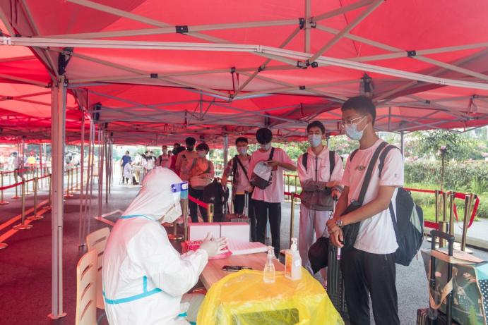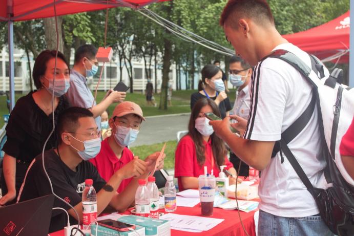 医务人员对新同学们进行核酸检测