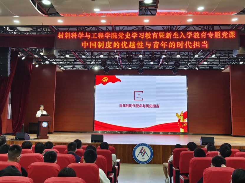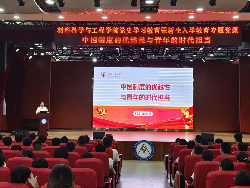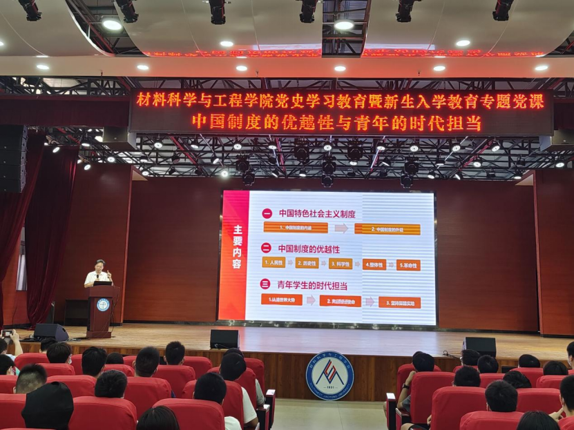 新生讲授党史学习教育暨新生入学教育专题党课,主题为《中国制度的优越性与青年的时代担当》。学院党委书记陈勇、党委副书记章春军、学校纪委办胡博、学校党政办薛逸凡、学院辅导员黄德明、郑纪伟、许欢、董海霞以及2021级全体新生参加了党课学习。党课由学院党委副书记章春军主持。