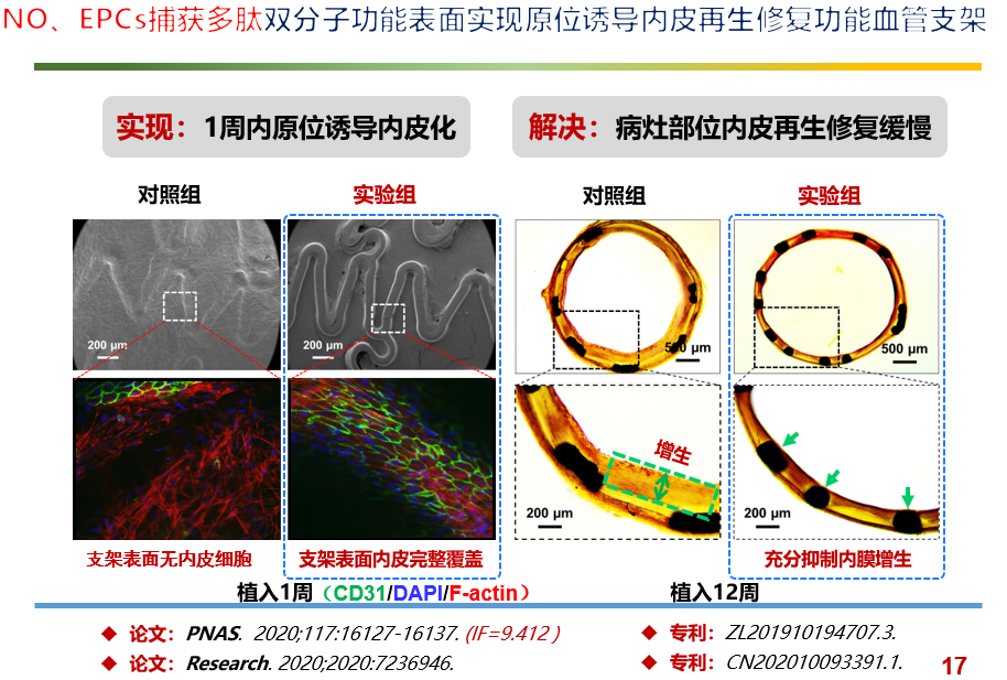 基于一氧化氮催化释放的内皮功能仿生血管支架涂层技术动物实验结果